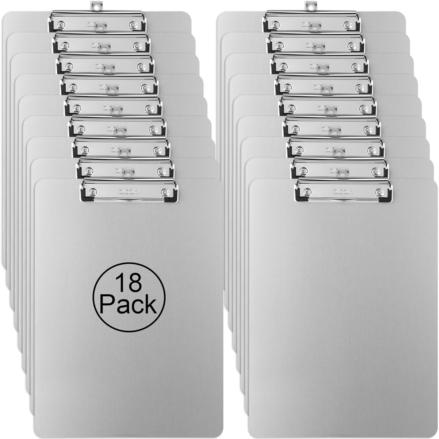 ZCZN Metal Clipboards, 18 Pack Heavy Duty Aluminum Clipboards 12 x 9 Inches, A4 Letter Sizer Document Holder with Low Profile Clip, Suitable for School, Office, Jobsite or Medical Staff, Silver