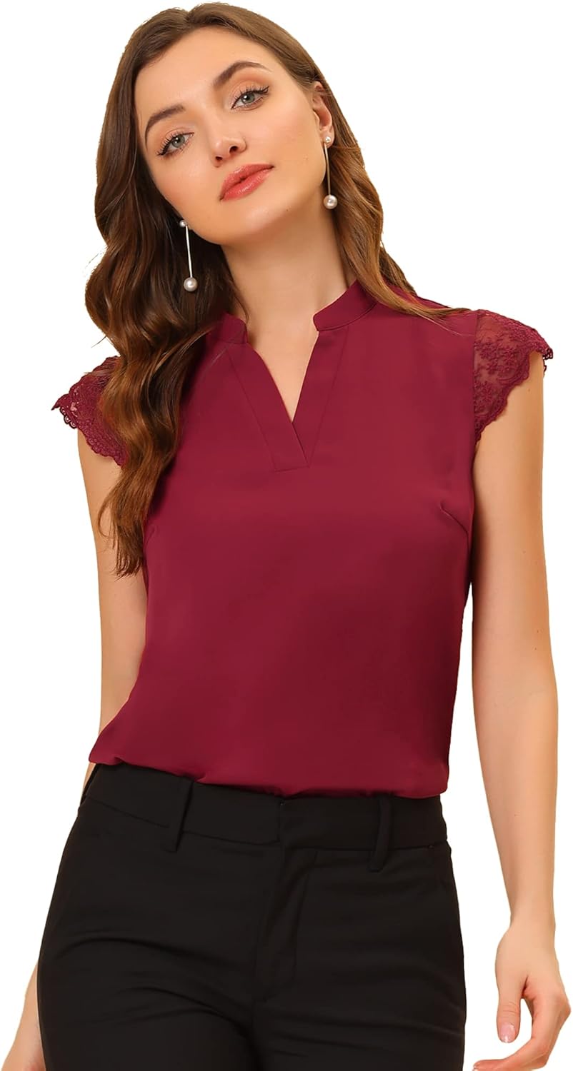 Allegra K Work Top for Women's Office Lace Cap Sleeve Basic Shirt Blouse