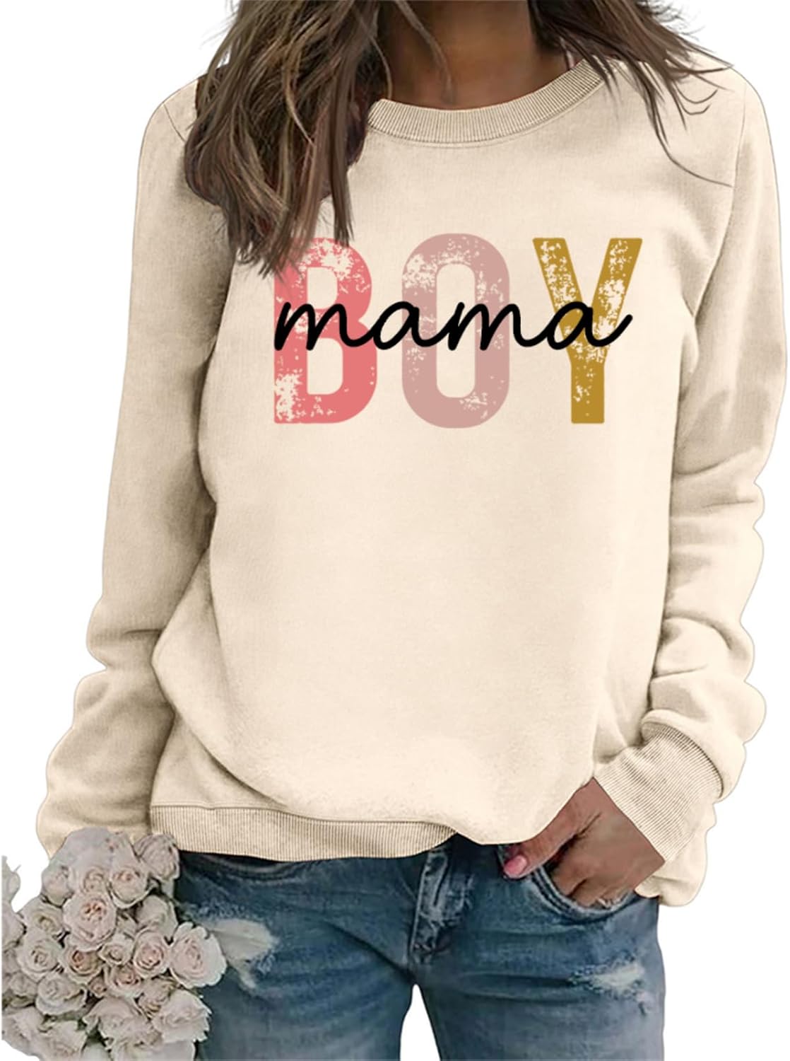 Boy Mama Sweatshirt Women Boy Mom Long Sleeve Graphic Shirts Funny Mama Crewneck Pullover Tops