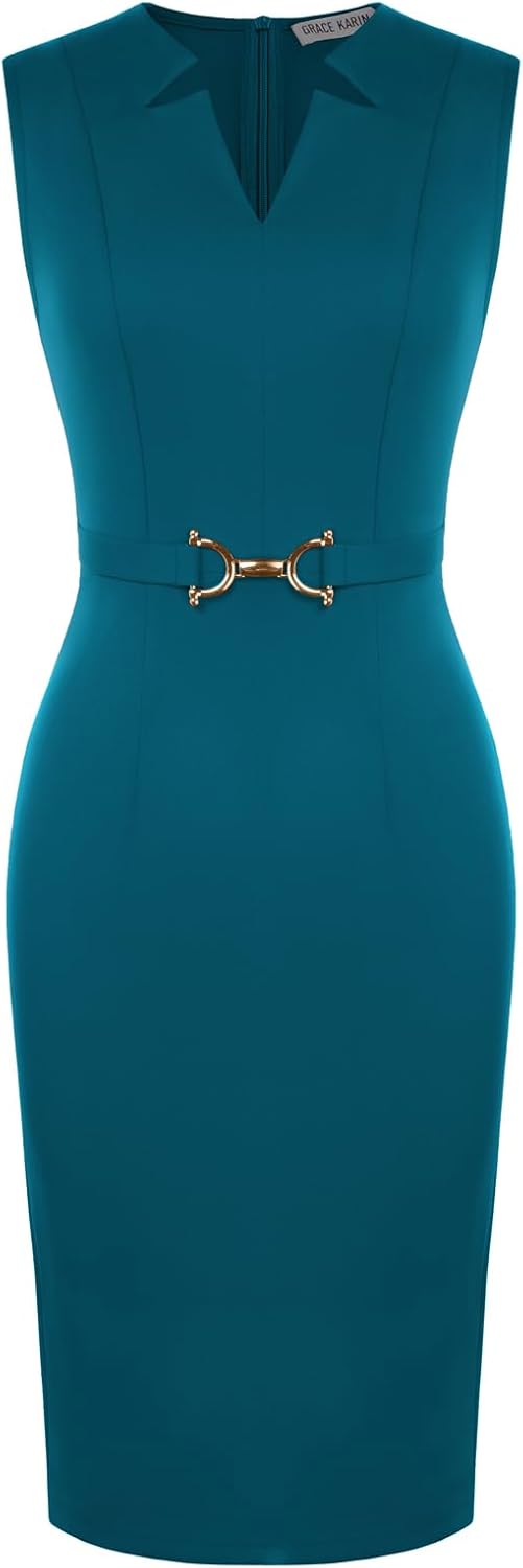 GRACE KARIN Work Dresses for Women 2026,V Neck Business Office Bodyon Dress,Sleeveless Pencil Semi Formal Midi Dress