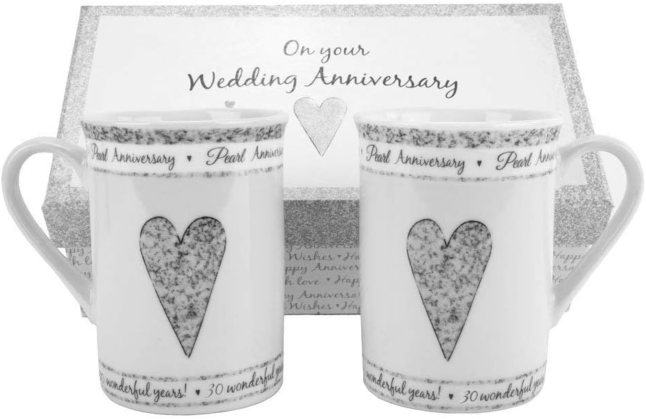 Beautifully Designed 30th Pearl Wedding Anniversary Set of Ceramic Mugs with Hearts | Dishwasher and Microwave Safe with Decorative Keepsake Box by Happy Homewares