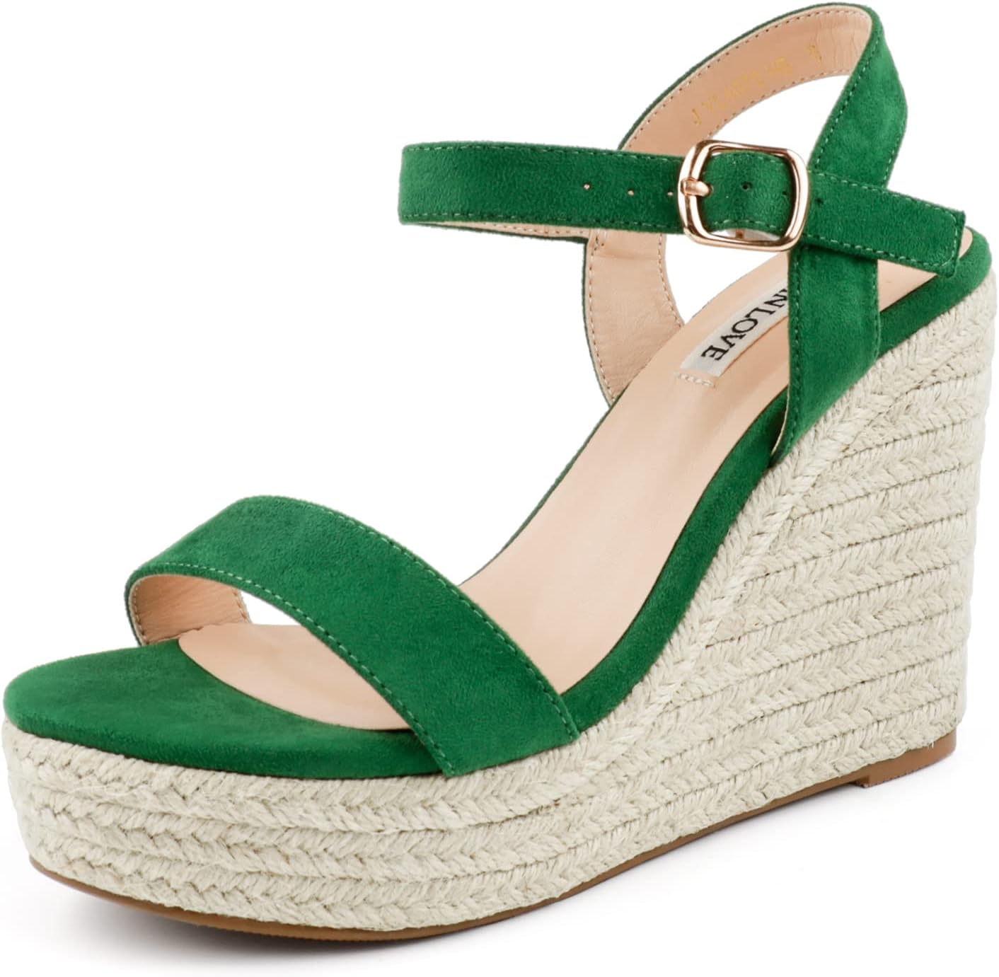 JOY IN LOVE Womens Espadrilles Wedge Sandals Platform Heels Ankle Strap Open Toe Buckle Sandals