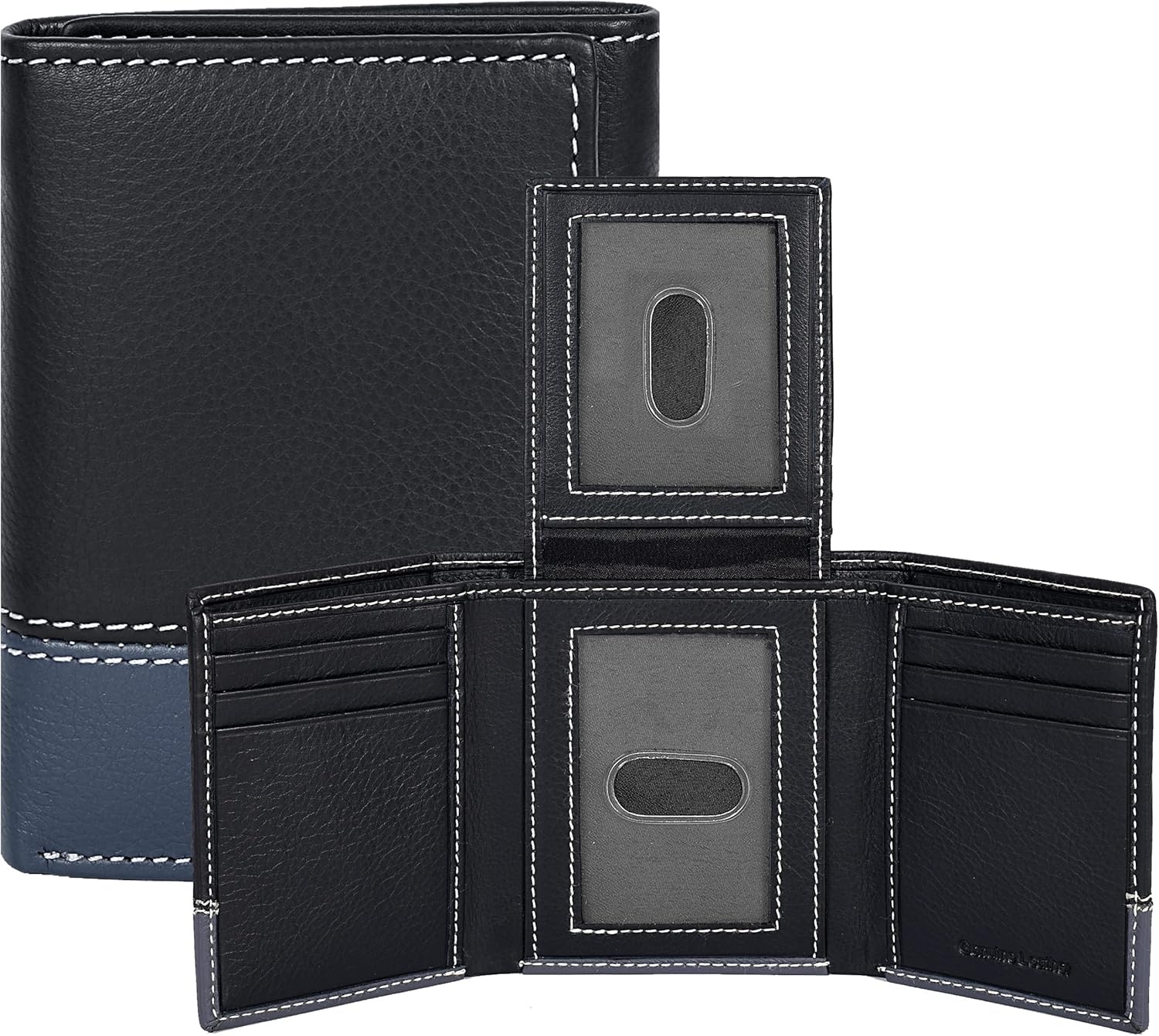 Real Leather Mens Trifold Wallet RFID Blocking Slim Minimalist Front Pocket - Thin & Stylish with ID Window in Gift Box