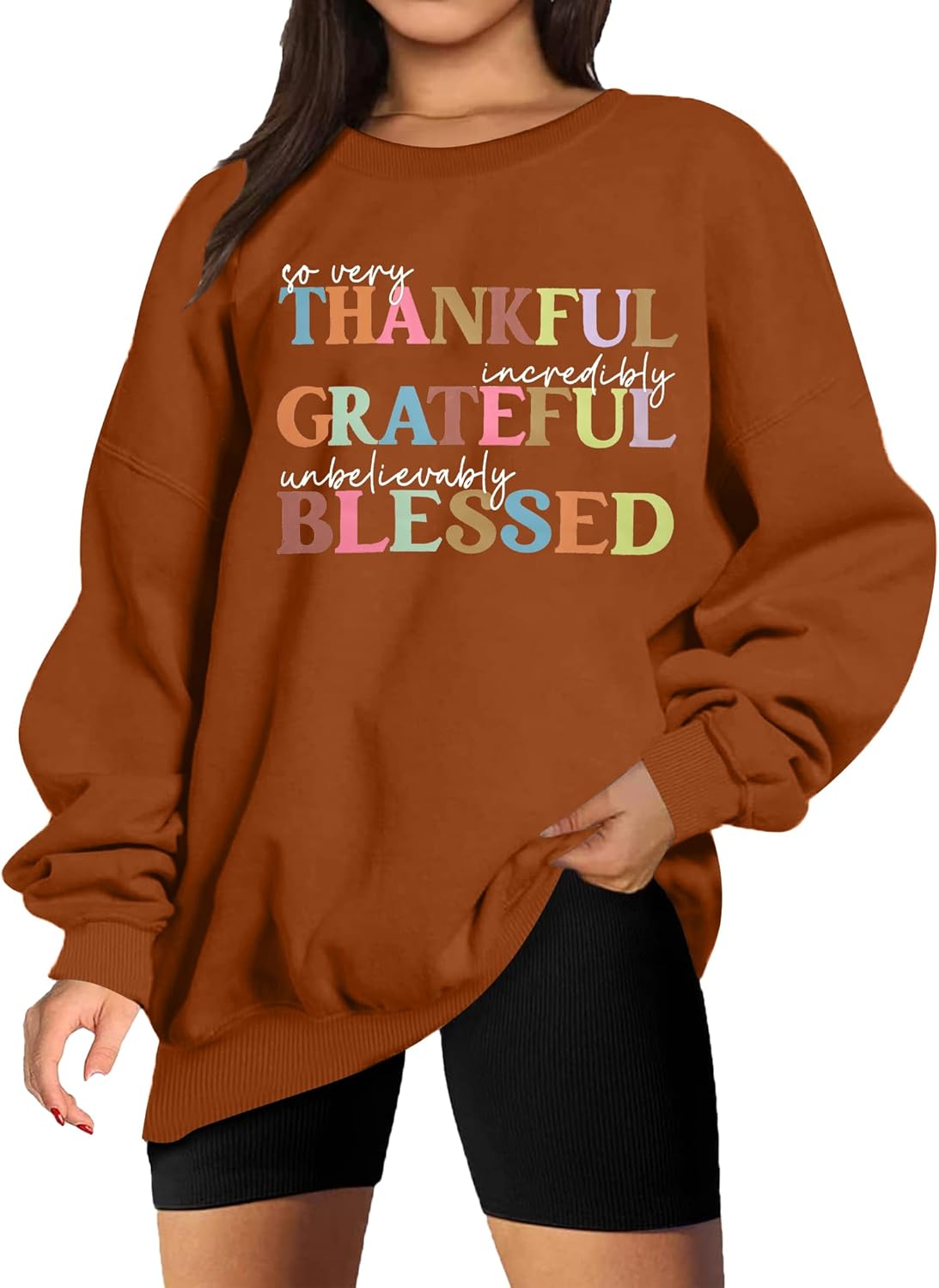 ALLTB Thankful Grateful Blessed Sweatshirt Women Thanksgiving Oversized Long Sleeve Pullover Fall Crewneck Tee Tops