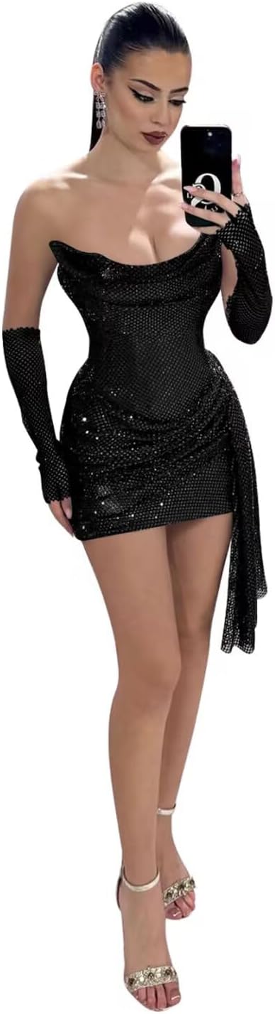 Strapless Sparkly Sequin Homecoming Dresses for Teens 2026 Short Mini Ruched Corset Cocktail Prom Dress