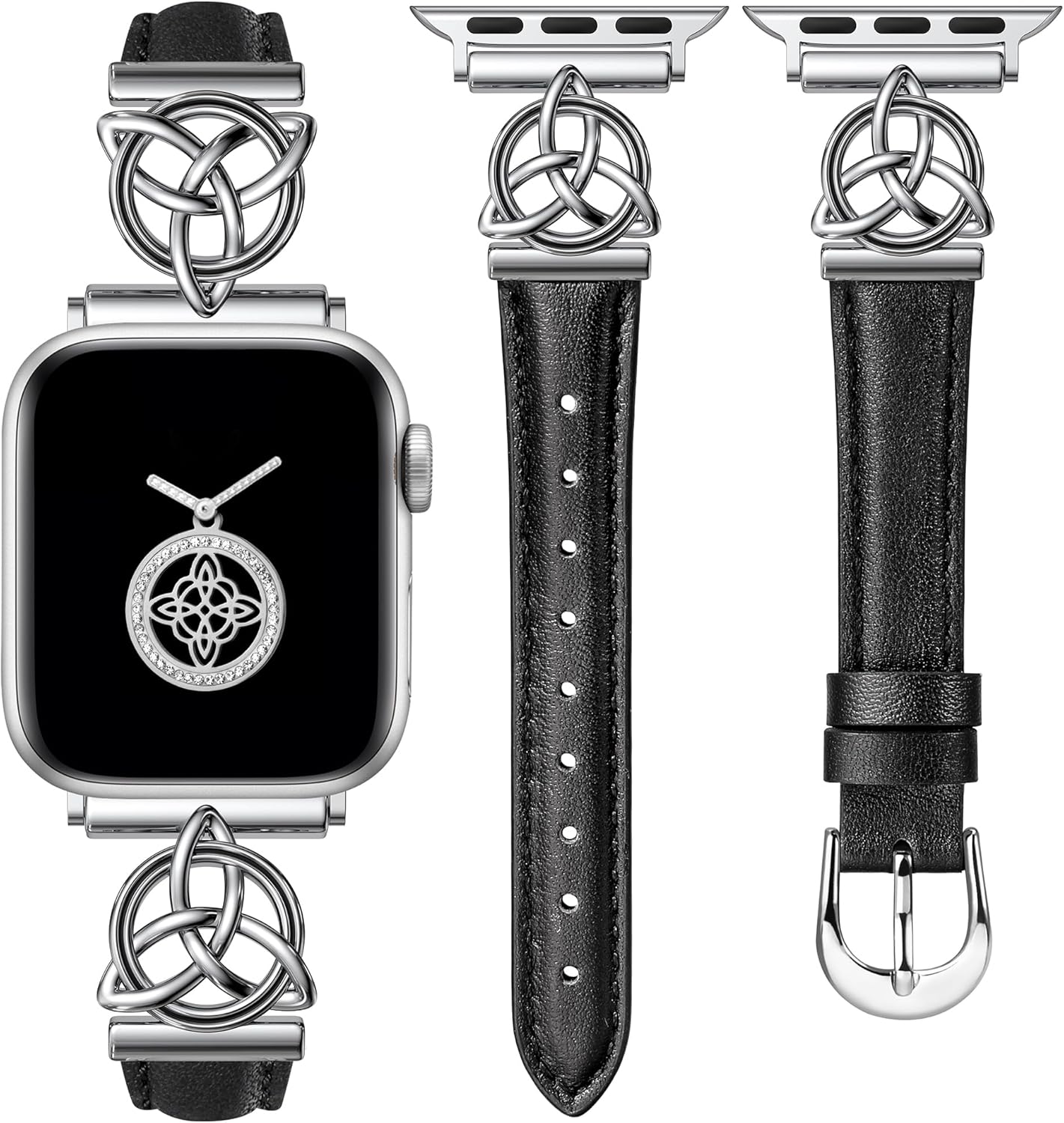 Minyee Compatible with Apple Watch Bands Leather 38/40/41/42/44/45/46/49mm Women, Slim Dressy Leather Strap with Celtic Knot Triquetra Metal Buckle for iWatch Series 11 10 9 8 7 6 5 4 SE/Ultra 3 2 1