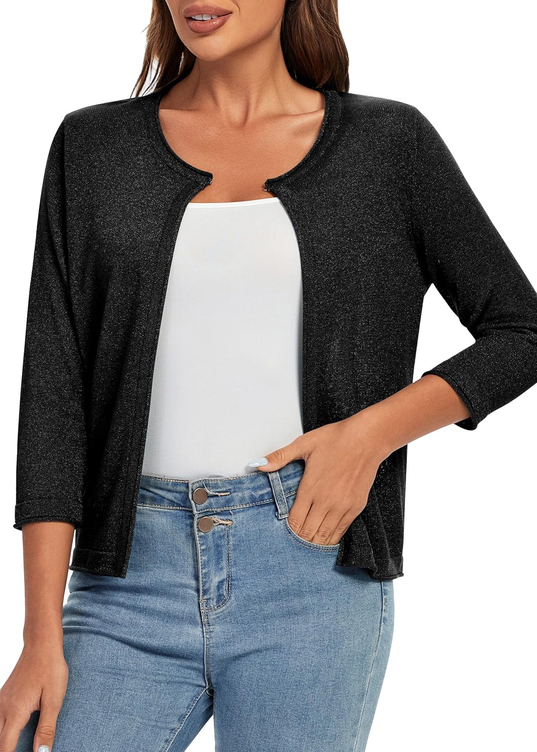 Urban CoCo Women's 3/4 Sleeve Open Front Shrugs Lightweight Crew Neck Cardigan Sweater