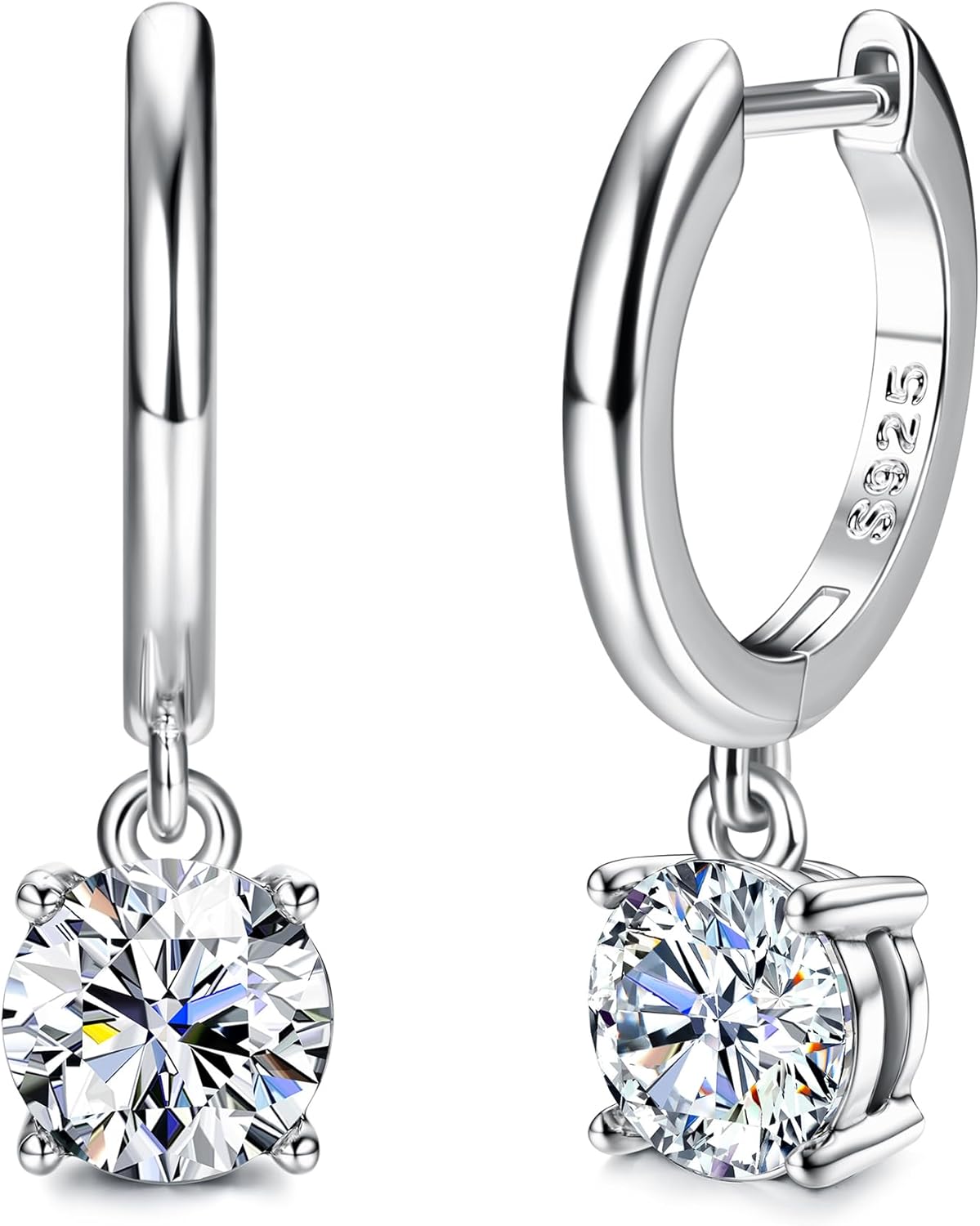 Moissanite Earrings,S925 Sterling Silver Moissanite Hoop 1.0ct-2.0ct D Color Brilliant Earring For Women Drop Dangle Earring(2.0 carats(1.0ct*2)-Gold)