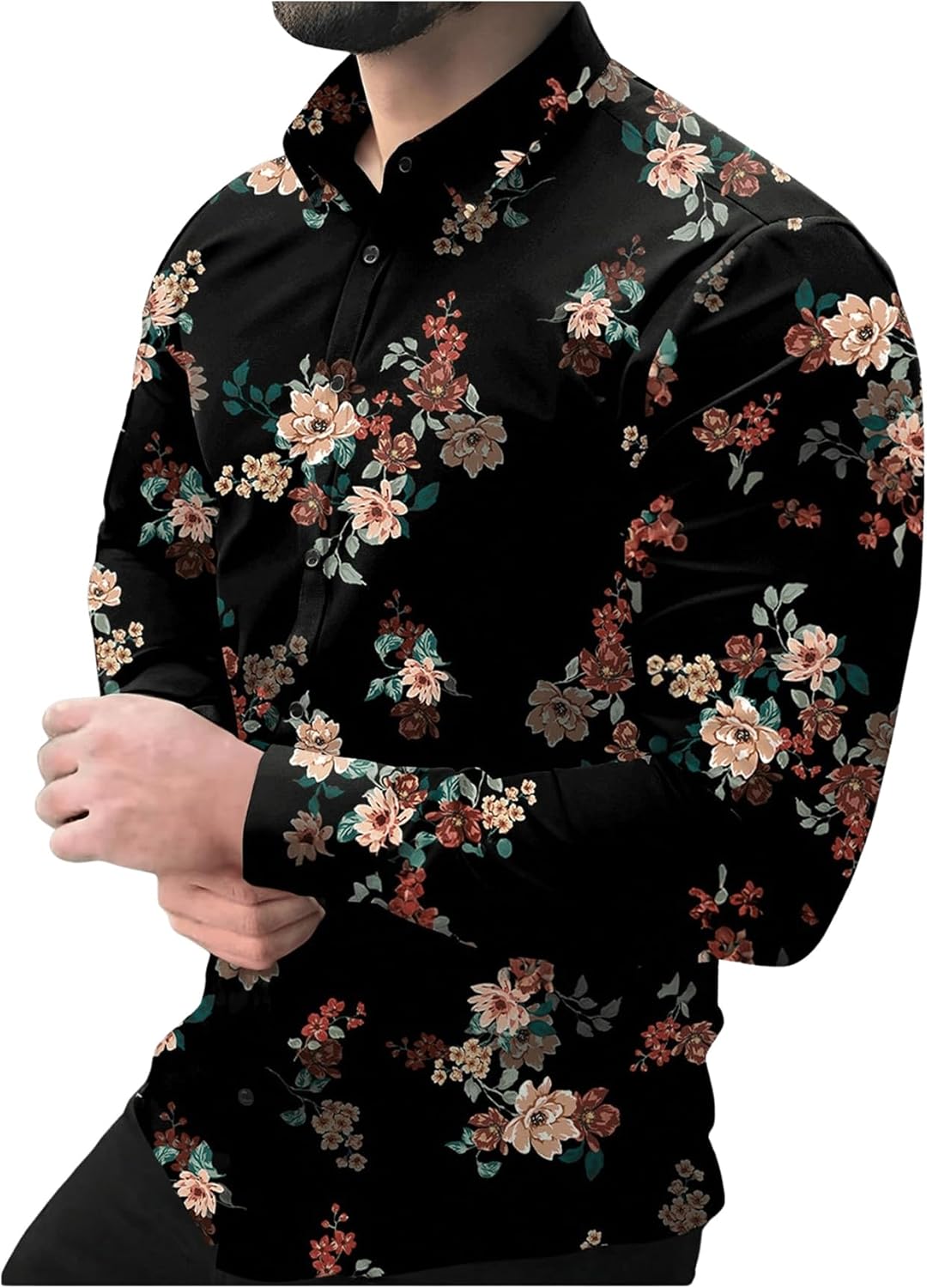 Men's Floral Dress Shirts Flower Graphic Collared Long Sleeve Button Down Shirt