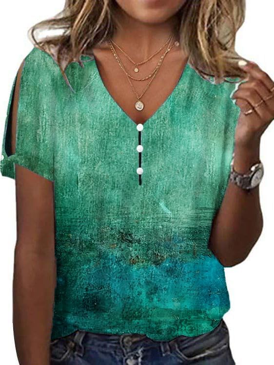 Women's Boho Butterfly Floral Print Cold Shoulder Flowy Tops Summer Dressy Casual V Neck Ladies Blouses Tunic Tops
