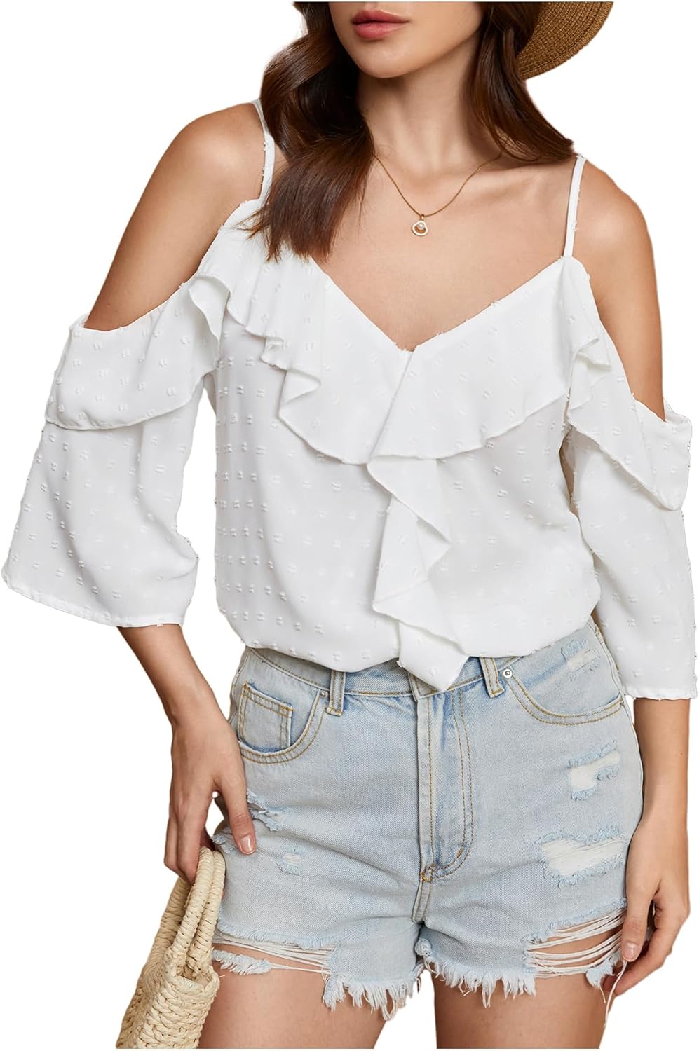 SweatyRocks Women's Off Shoulder Blouses Casual Ruffle Tops Loose Fit Blouse Fall Outfits