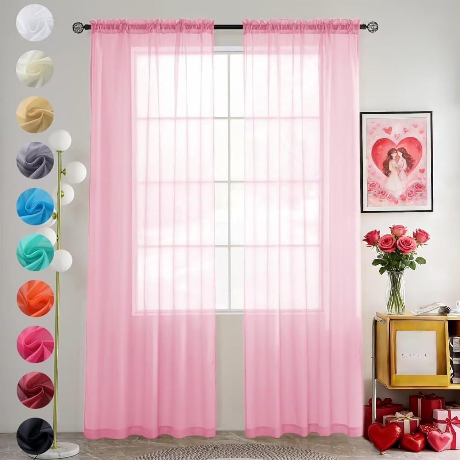 - Allowing Natural Light Flowing Into Your Room, While Still Providing Privacy,Give You Light & Airy Feel.Basic Rod Pocket Sheer Voile Window Curtain 2 Panels Light Pink 52 W x 84 L inch Long 1 Pair.