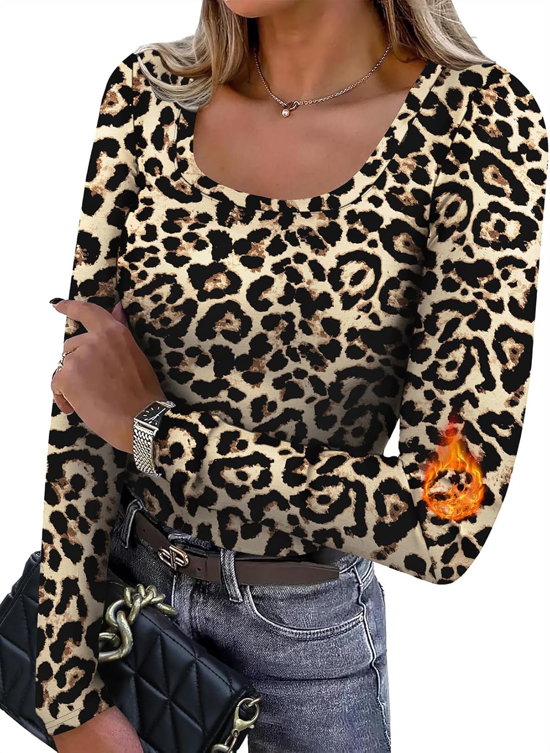 WIHOLL Long Sleeve Thermal Shirts for Women Light Fleece Tops Fall 2026 Square Neck Basic Tees