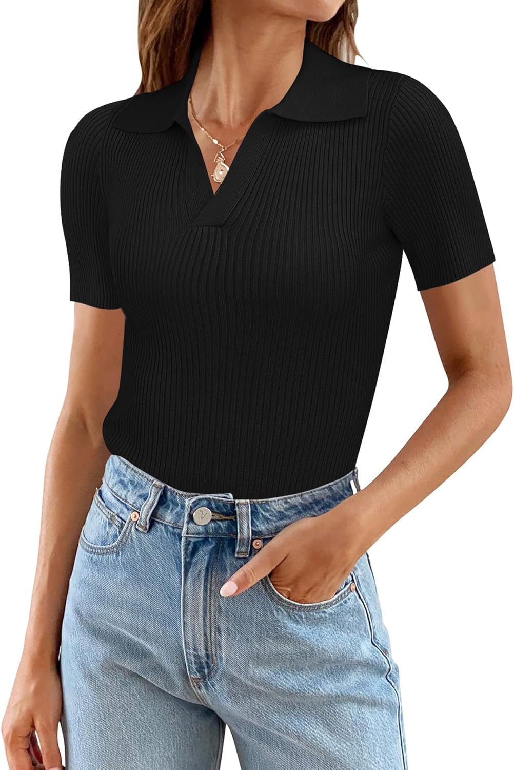 Ivicoer Womens V Neck Sweaters Dressy Casual Short Sleeve Sweater Slim Fit Lightweight Knit Tops