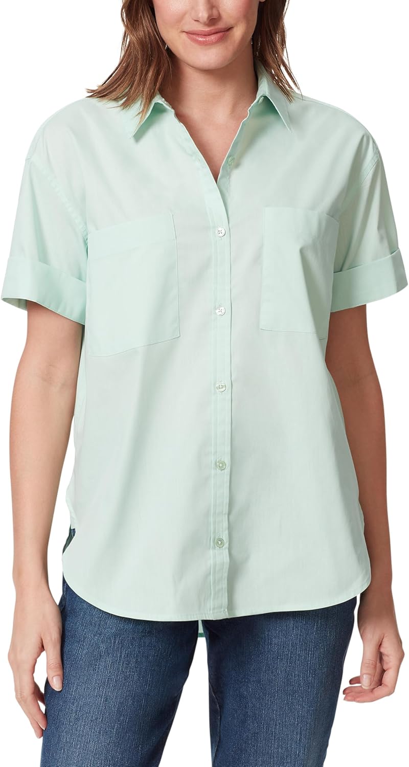 Gloria Vanderbilt Womens Amanda Button Down Shirt with Cuffed Short Sleeves and Patch Pockets Standard