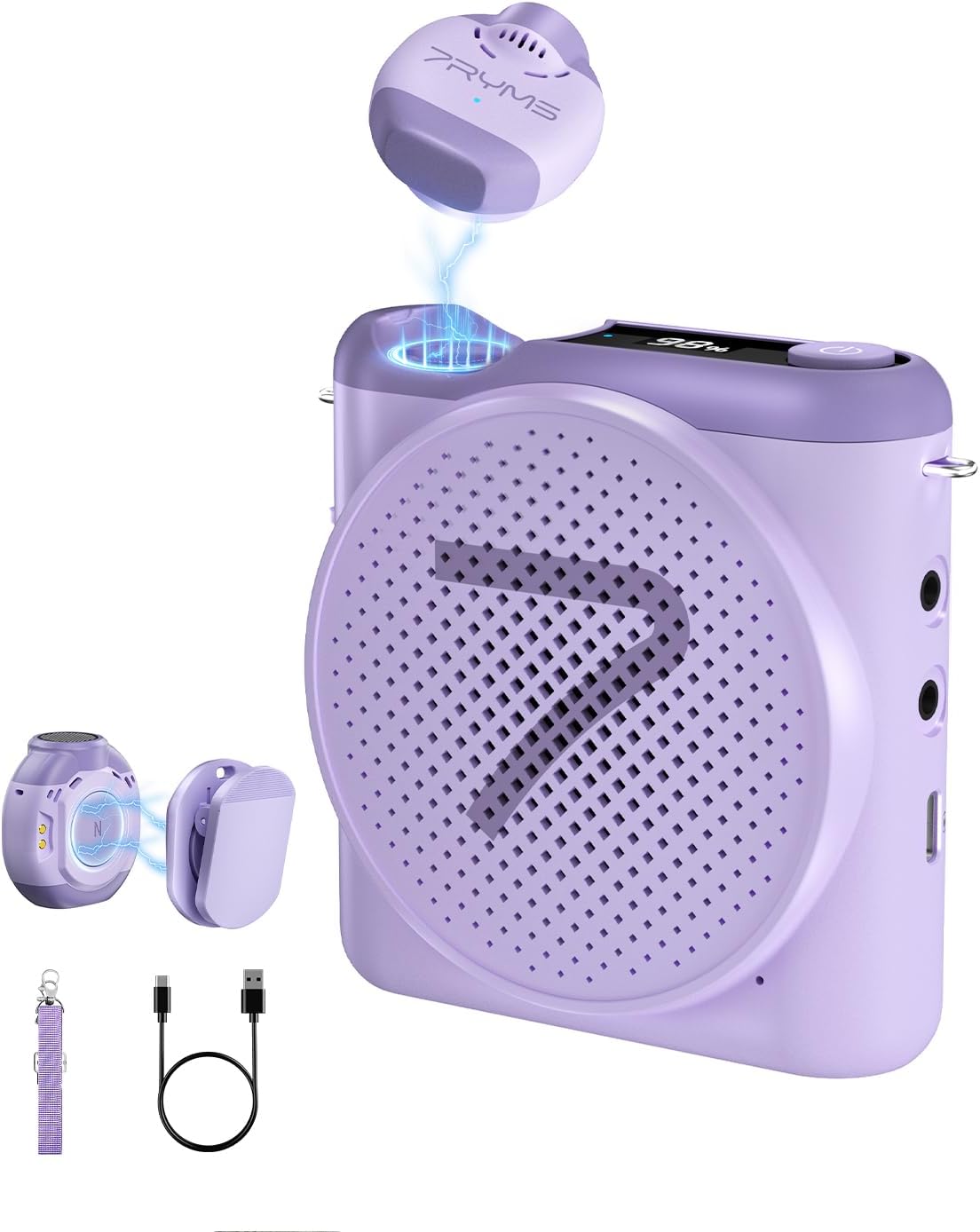 7RYMS WA2 Wireless Voice Amplifier for Teacher with Magnetic Lavalier Mic, Portable Microphone Speaker-Noise Canceling, 23H Working, 164ft Range, Mini Pa System for Teaching, Speech, Tour Guides, Yoga