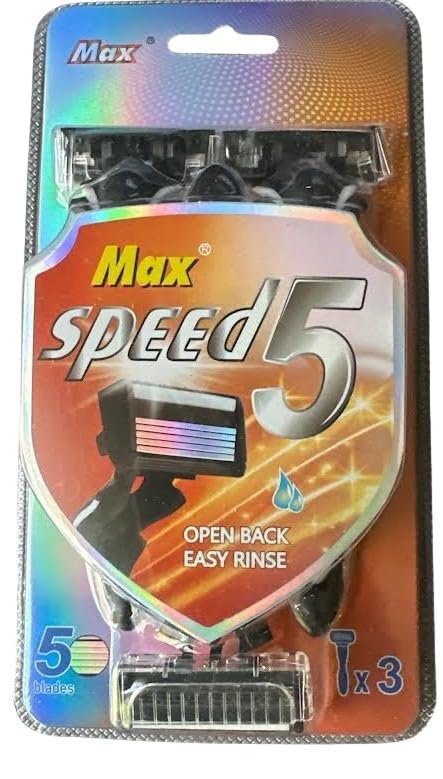 Max Speed 5 Stainless Steel Razors Blades, A Series for Men Shaving, with Lubricated Strip and Ergonimic Handle for Superior Handling Control, 3 Pack.
