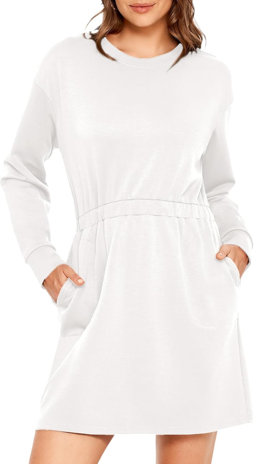 Glamaker Womens 2024 Fall Sweatshirt Dresses Winter Long Sleeve T Shirt Dresses Air Essential Outfit Dress with Pockets