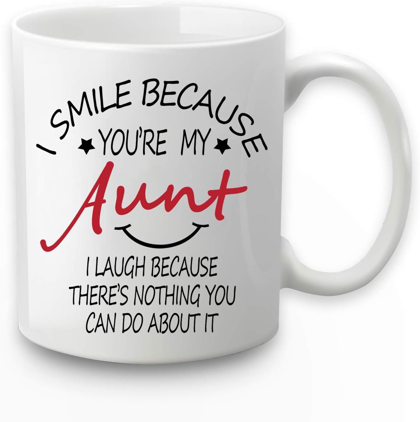- SAFE & DURABLE: Our I smile because you are my aunt mug use the latest technology, microwave and dishwasher safety, lead-free printing, 11 ounces large capacity and large handle design, more convenient to daily use.