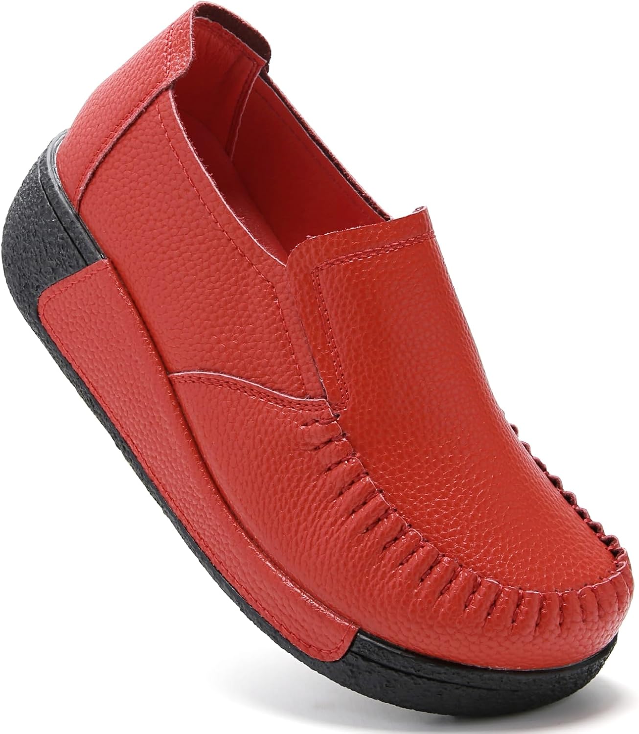 UZB Women's Slip On Loafer Leather Comfort Casual Platform Shoes