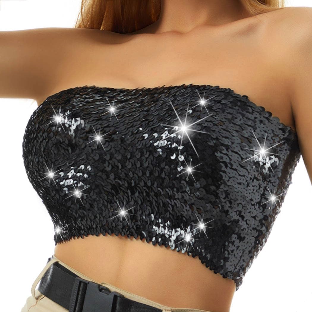 Nicute Sequin Tube Top Sparkly Crop Tops for Women