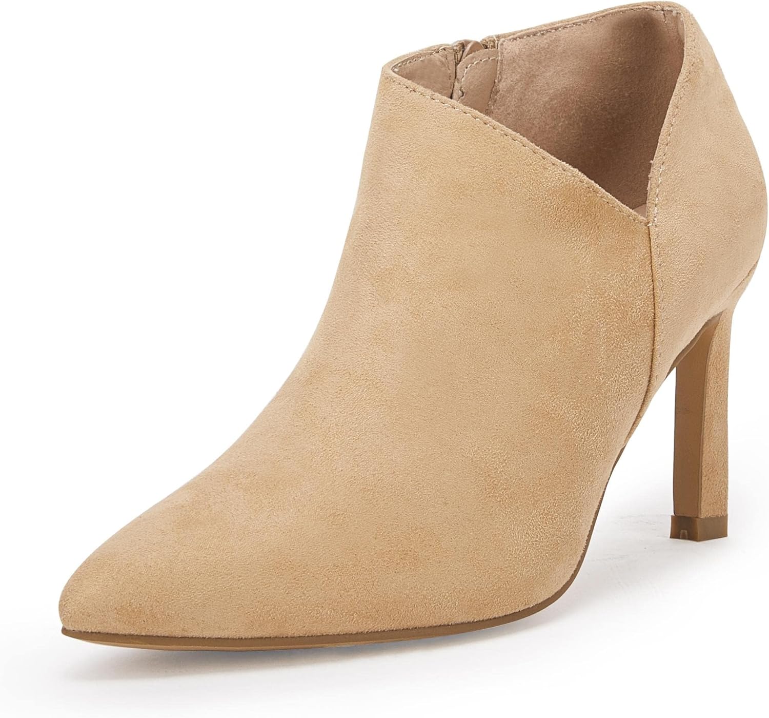 Coutgo Womens Pointed Toe V Cut Ankle Boots Kitten Heel Side Zip Office Booties