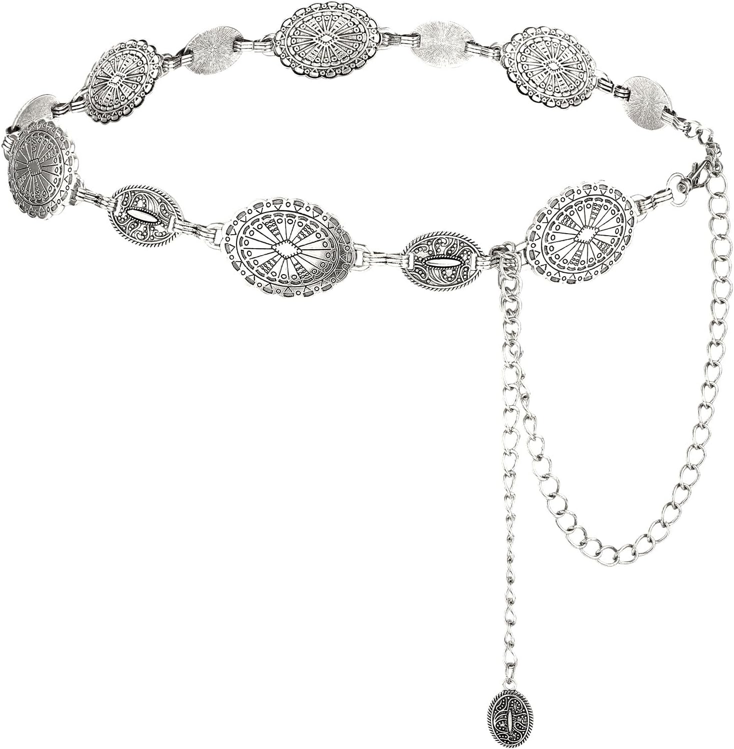 AWAYTR Western Chain Belt for Womens - Adjustable Boho Turquoise Metal Cowgirl Waist Chain Belt for Dress Jeans