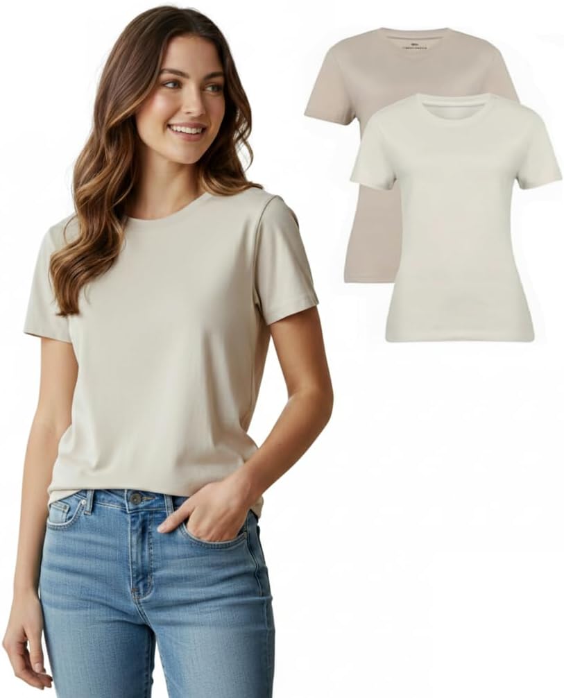 Women's 100% Cotton Crew Neck T-Shirt – Classic Fit, Soft & Breathable Short Sleeve Tee Casual Trendy Summer Top|Pack of 2