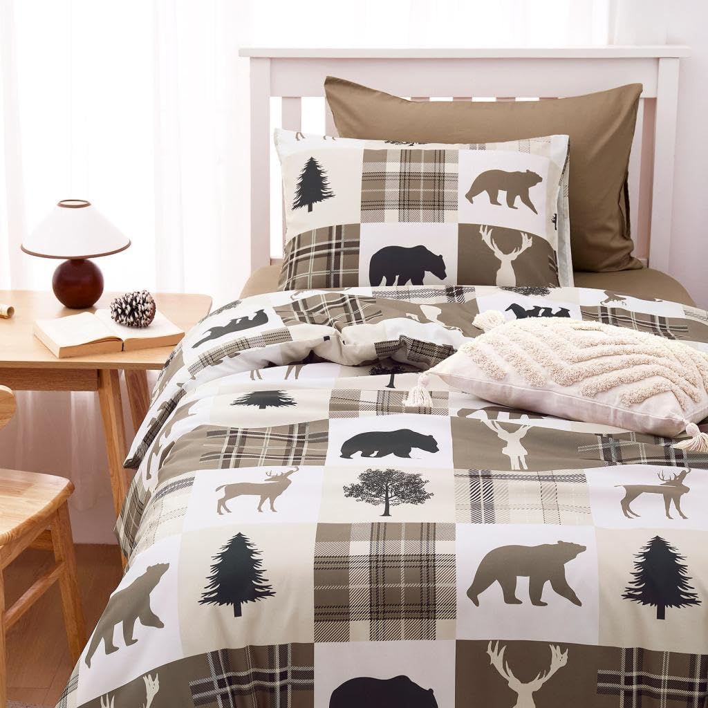 - Rustic Design: Features a lodge themed patchwork pattern with woodland animals and plaid accents that bring a touch of the great outdoors to your bedroom decor; ideal for fans of cabin-inspired aesthetics