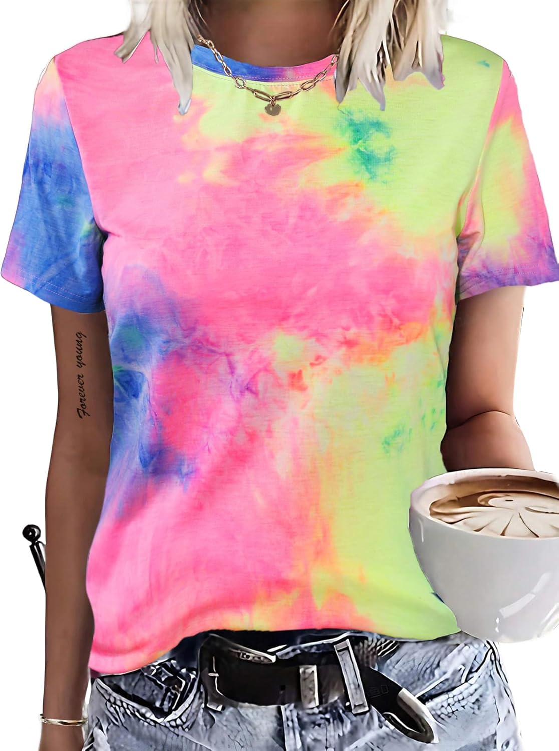 Remidoo Womens Tie Dye Short Sleeve Top Crewneck Summer Loose Fit T Shirt Tee Multicolor XX-Large
