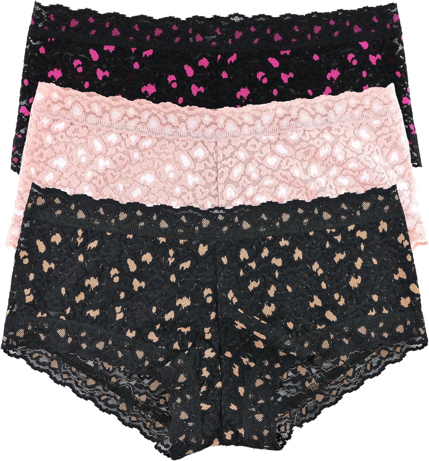 hanky panky - Daily Lace Boyshorts | Women's Underwear, Soft Stretch Fit Panties, Cotton Blend | Sizes (XS-XL), 3 pack