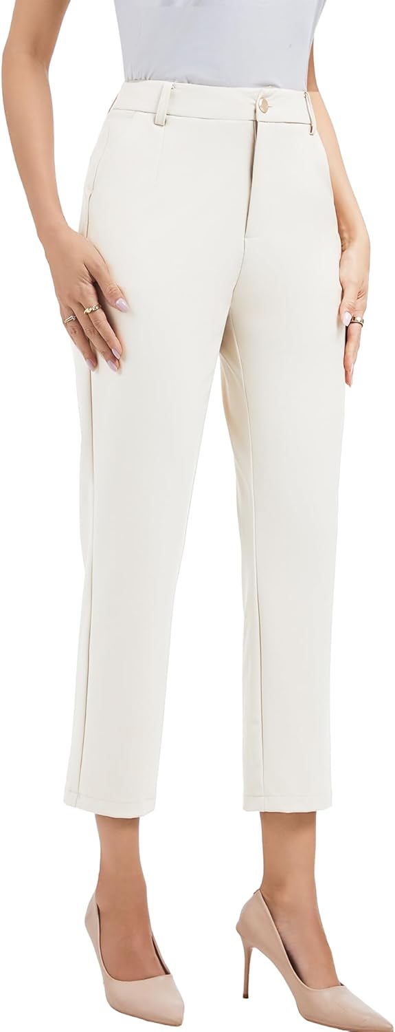 Women's High Waisted Dress Pants Straight Leg Business Trousers with Pockets Stretch Fabric for Office Work Casual
