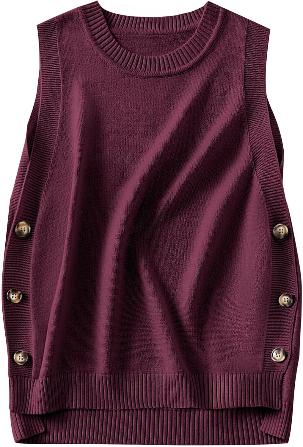 ANRABESS Womens Sweater Vest Summer Sleeveless Crewneck Ribbed Knit Side Button Loose Pullover Tank Tops 2025 Fall Outfits