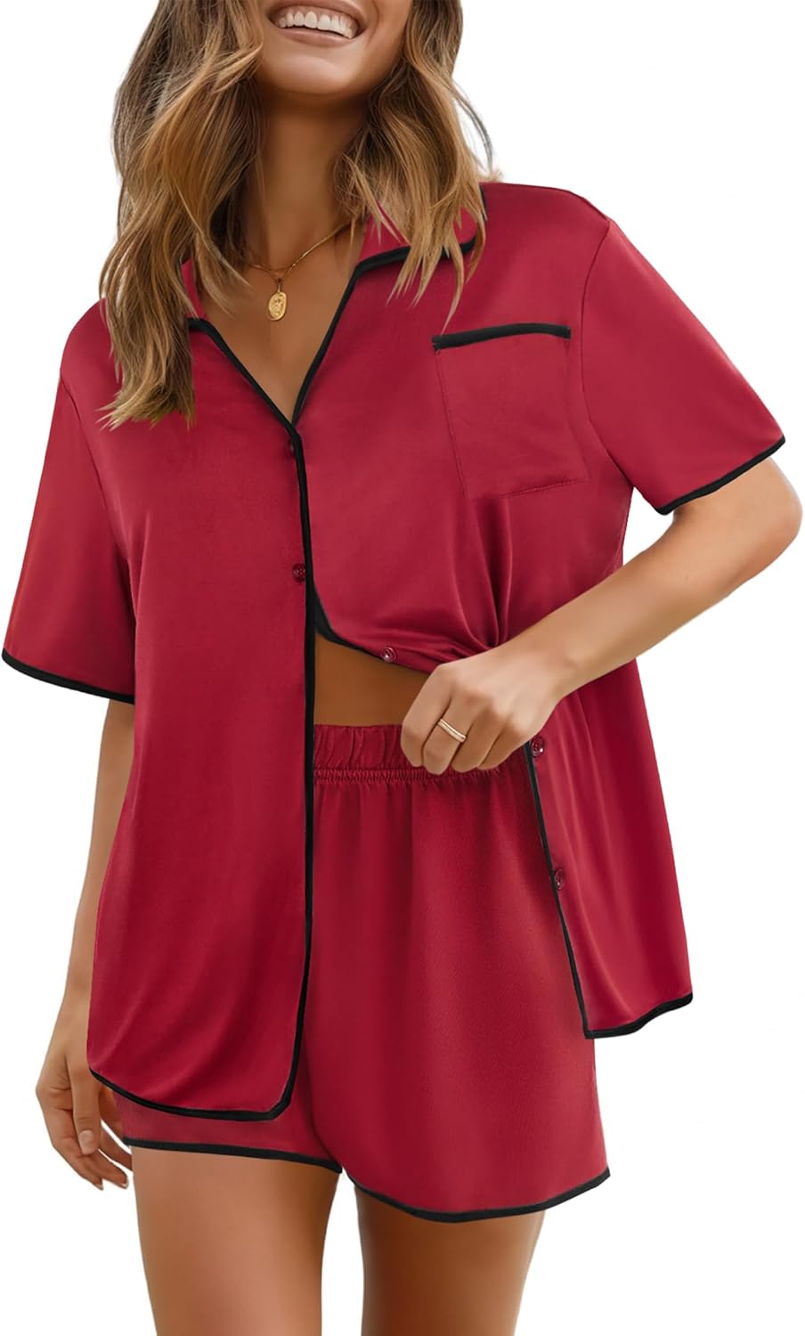 Ekouaer Pajamas Set for Women Short Sleeve Casual Sleepwear Button Down Pj Sets Shorts Soft Loungewear for Summer,S-XXL