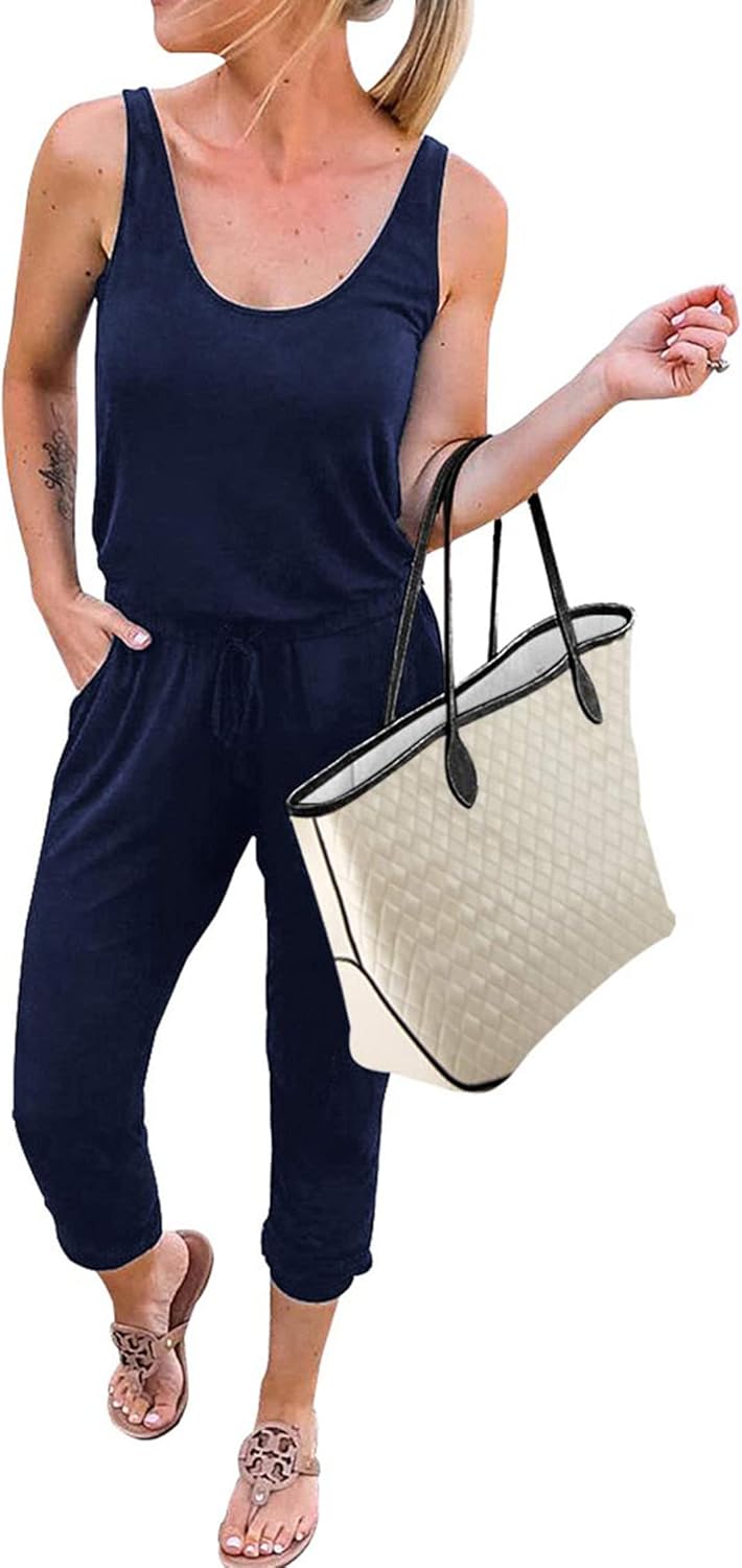 KIRUNDO Women 2026 Summer Jumpsuits Casual Sleeveless Drawstring Elastic Waist Romper Vacation Cruise Airport Travel Outfits