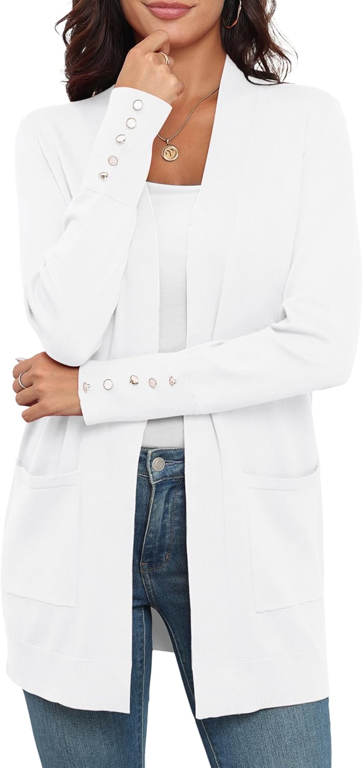 VIISHOW Women Cardigan Sweater Lightweight Open Front Long Sleeve Soft Fine Knit Casual Trendy Kimono Cardigans with Pockets