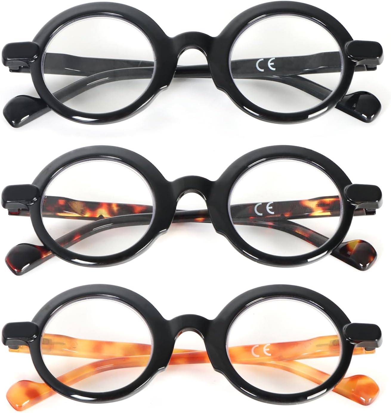 MMOWW 3 Pack Retro Round Reading Glasses for Women Men Blue Light Blocking Readers with Spring Hinges