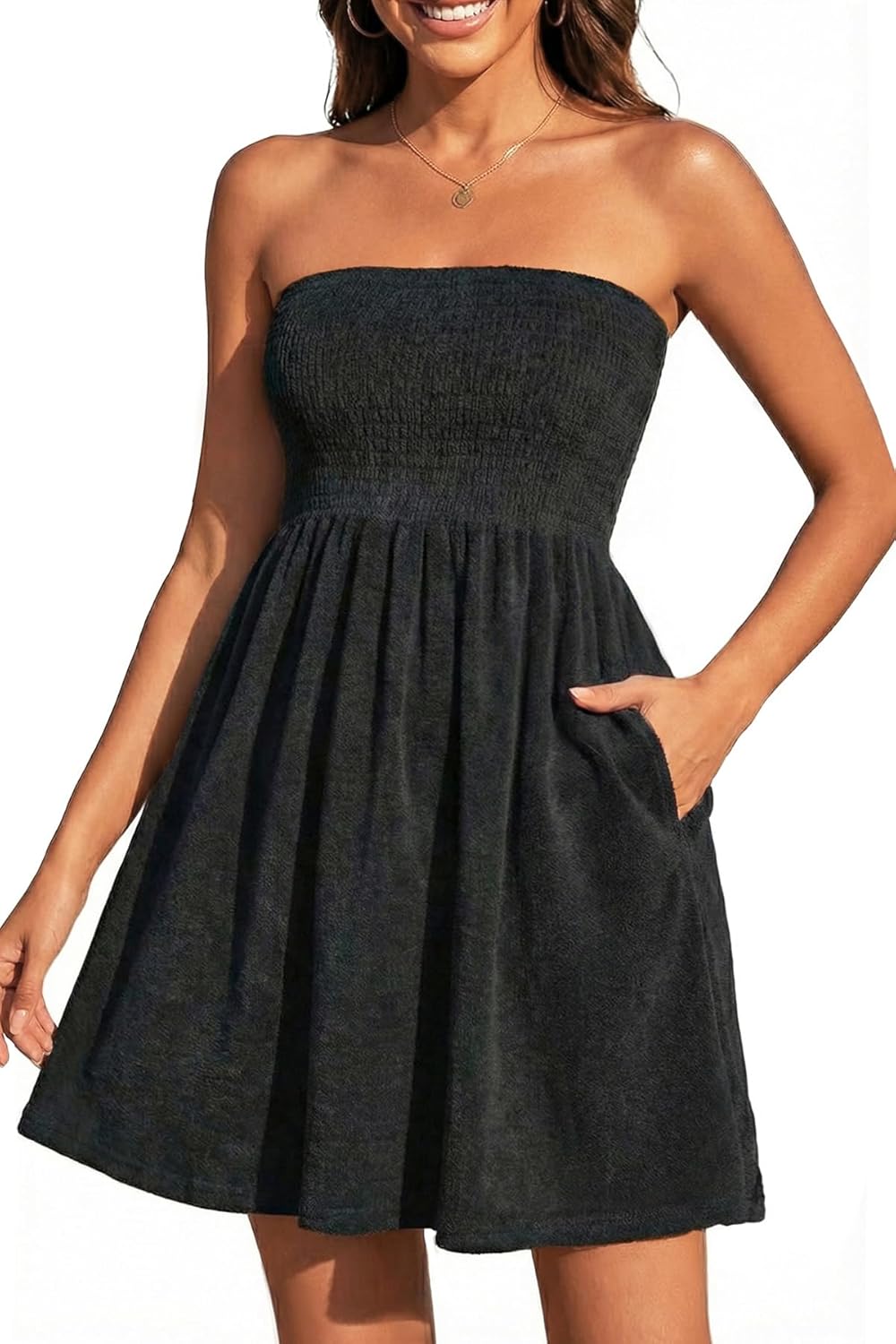 Yonique Women Terry Cloth Cover up - Strapless Beach Cover Up Tube Top with Pockets