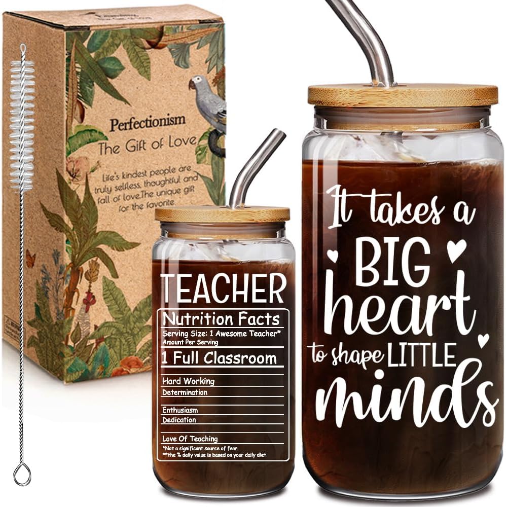 Teacher Appreciation Gift 16oz Glass Cup Christmas Gifts for Teacher Women, Graduation Thank You Teachers Gifts - It Takes A Big Heart to Shape Little Minds, Teachers Back to School Cup Gift for Women