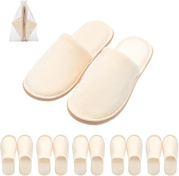 SIMEIER 6 Pairs Gray Spa Slippers for Guests, Disposable & Reusable Non-Slip Hotel Slippers with Storage Bag, Soft Cotton Guest Slippers for Women & Men, Non-Slip for Home, Gym, Bridal Party