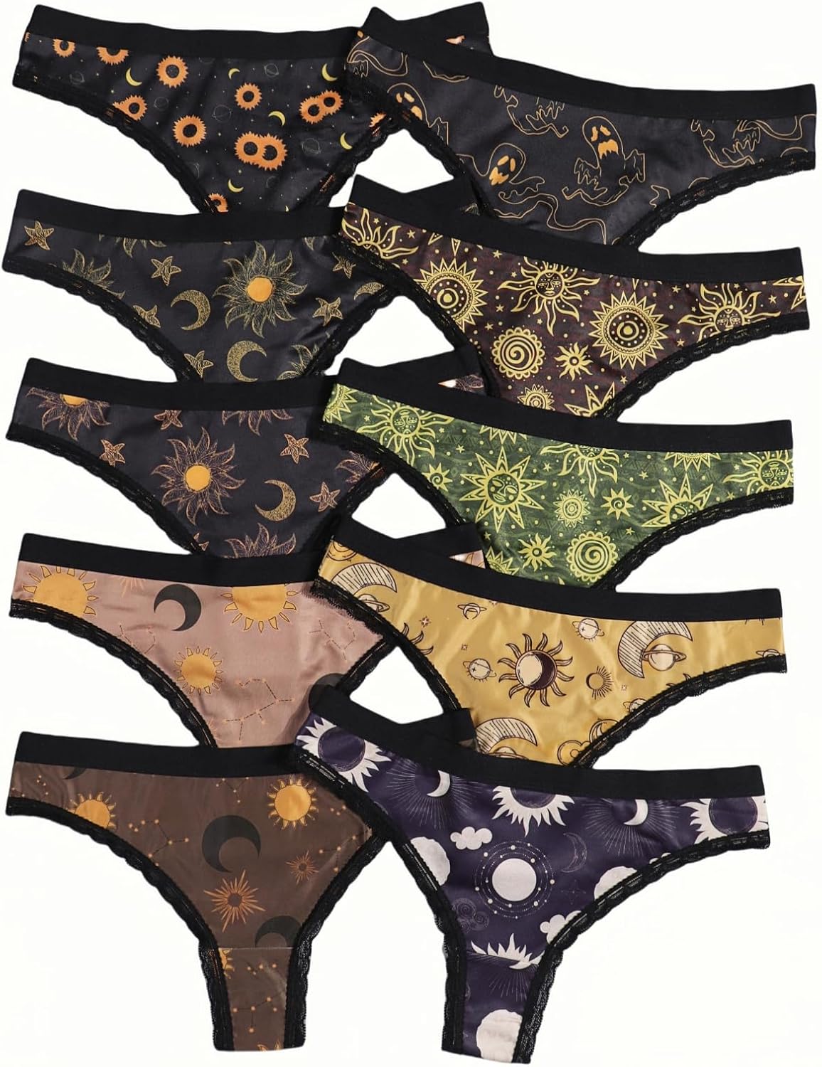 Morvia Variety of Panties Thongs Sexy Cute Chic Gothic Contrast Lace Halloween Skulls Stars Inspired Print Random Underwear
