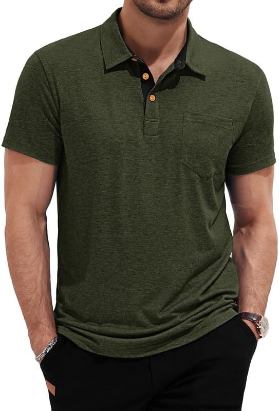 Mens Polo Shirts Short Sleeve Cotton Casual Summer Knit Golf Stylish T Shirts with Pockets