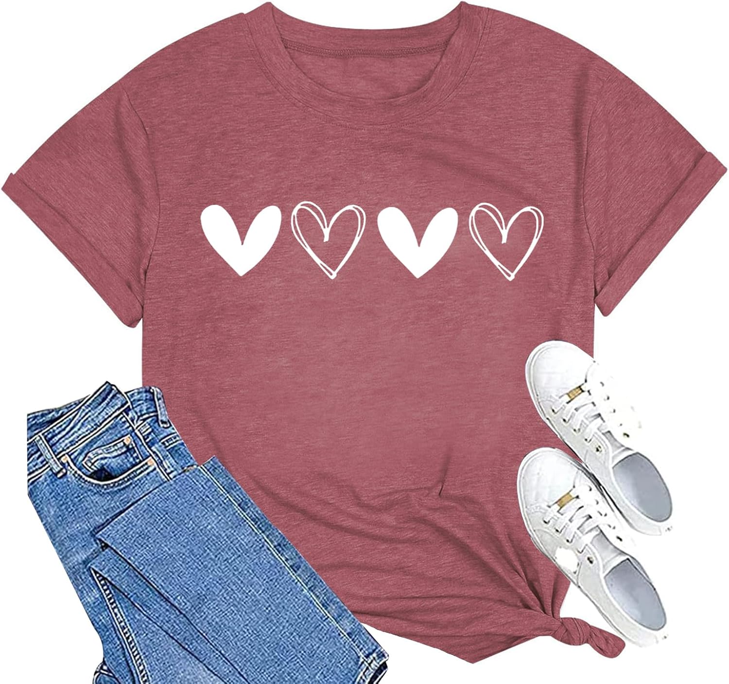 Valentine's Day Shirts for Women:Cute Love Heart Tshirts Graphic Tees Valentine Casual Short Sleeve Top