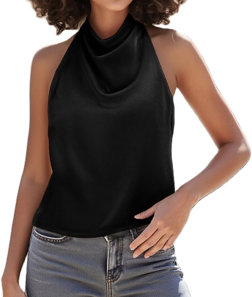 Women Backless Halter Tank Top Silky Sleeveless Mock Neck Cami Shirt Satin Open Back Going Out Tops