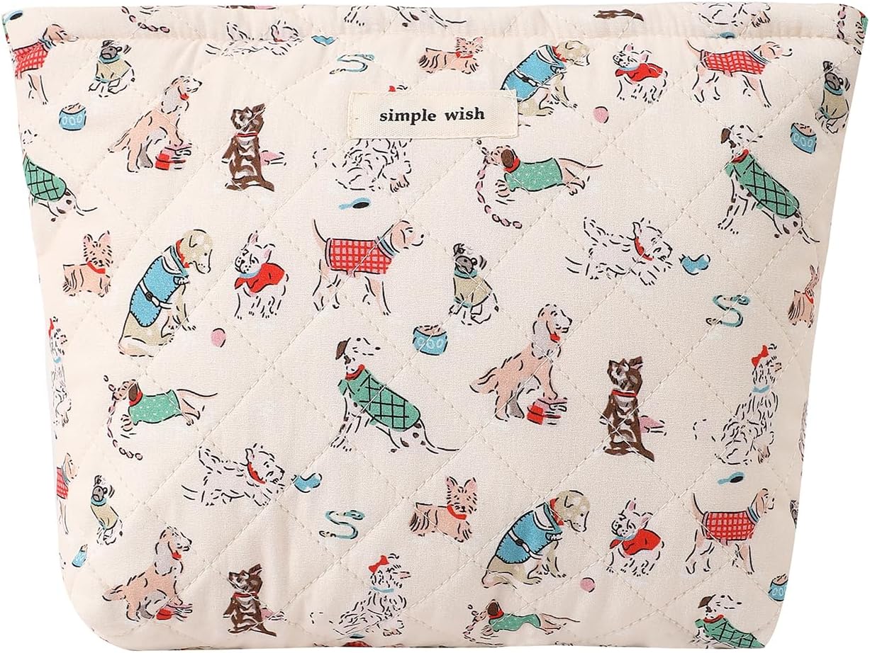 Quilted Cotton Makeup bag Cute Animal Cosmetic bag,Cotton Aesthetic Makeup Bag Large Capacity Travel Toiletry Bag for Women and Girls(01Dog)