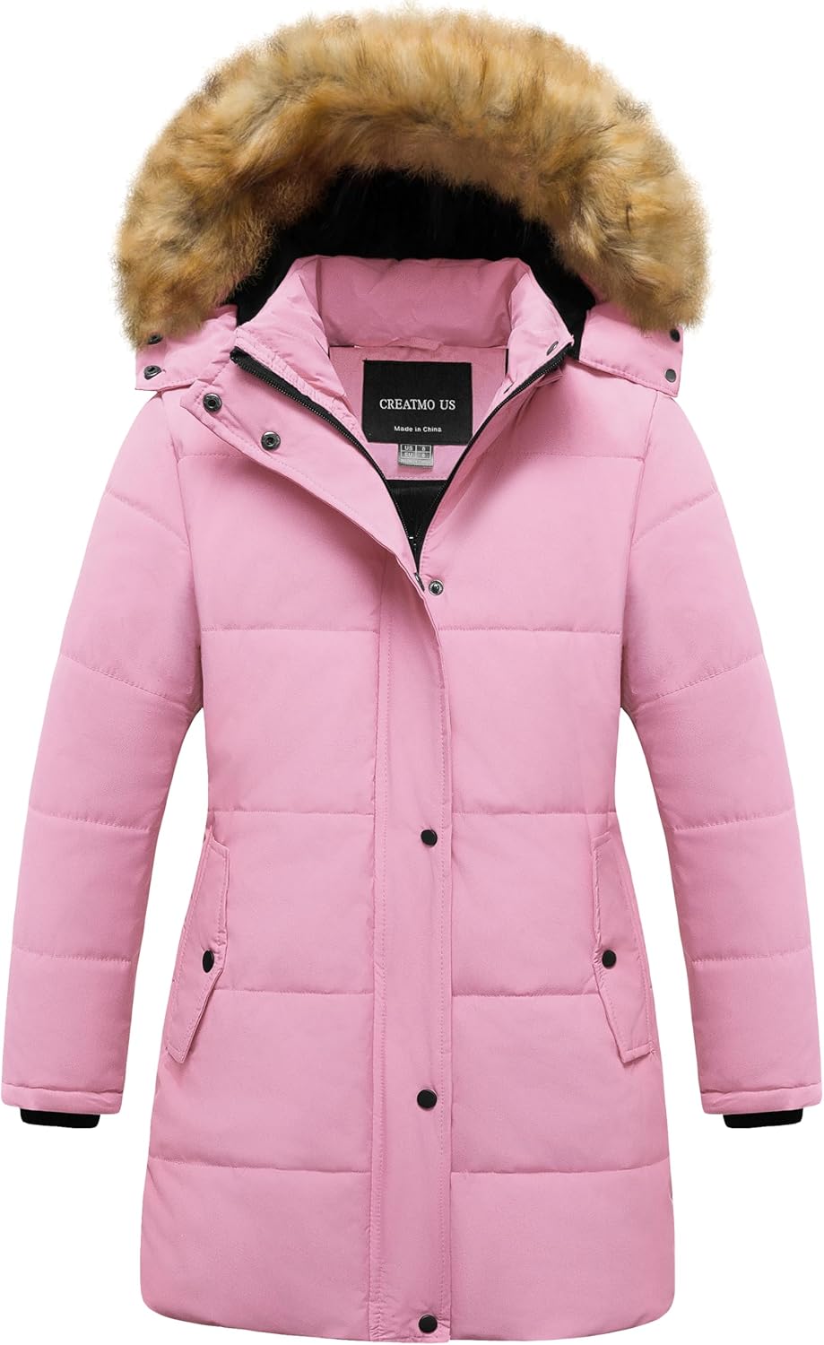 CREATMO US Girl's Winter Fleece Lined Long Parka Puffer Coat Thicken Ski Jacket With Fur Trim Hood