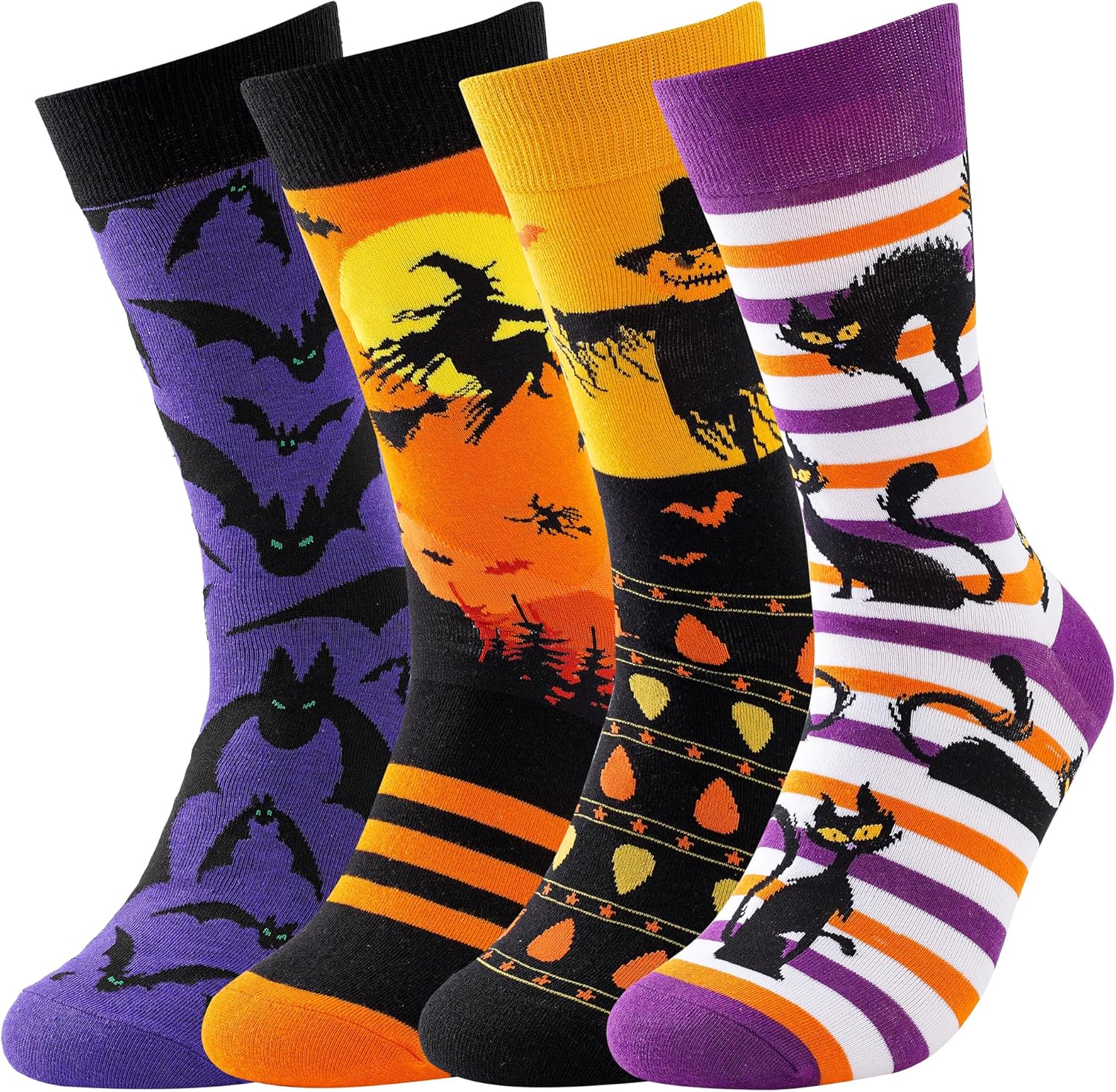 BONANGEL Halloween Socks Men, Funny Novelty Cute Holiday Crew Socks, Crazy Halloween Gifts for Men