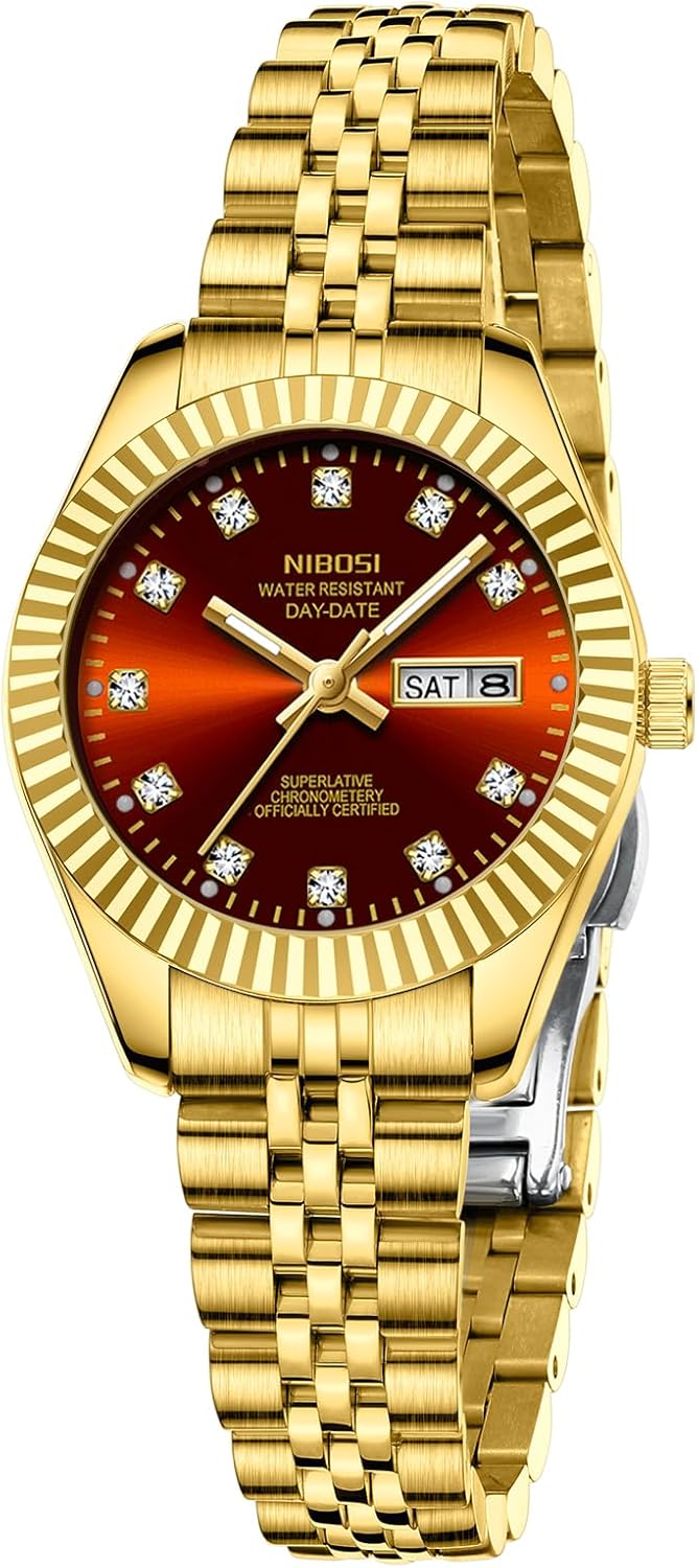 NIBOSI Watches for Women Analog Quartz Stainless Steel Dial with Day Date Luminous Waterproof Dainty Classic Luxury Diamond Elegant Dress Women's Watch for Small Wrists