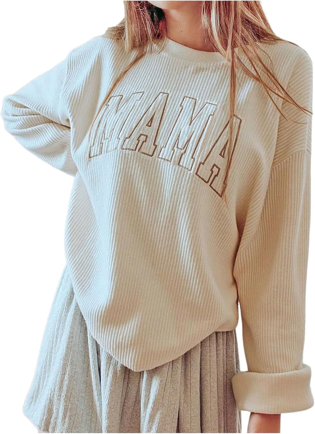 Women's Letter Embroidered Crewneck Sweatshirt Dressy Casual Long Sleeve Loose Pullover Tops