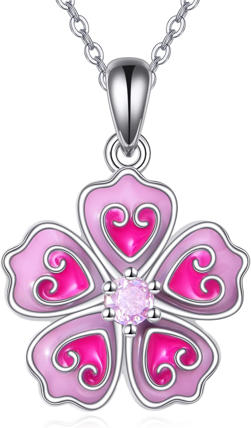 Cherry Blossom Necklace for Women 925 Sterling Silver Pink Flower Necklace Cherry Blossom Pendant Jewelry Gifts for Her